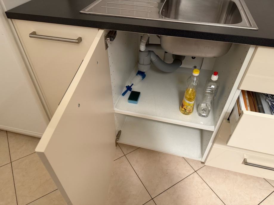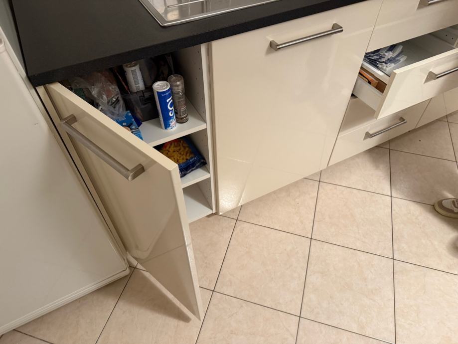 Bez ikakve ogrebotine, sve kao novi i kao da je nekorištenu, sve ladice i ormari na soft-close mekano zatvaranje.