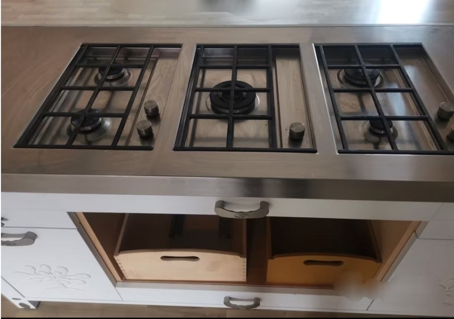 Prodajem kuhinju koja je bila izložena za prezentiranje i pripremanje zdrave prehrane..rađena po mjeri i posebnom dizajnu..jako jako puno predivnih detalja..bila plaćena preko 30 tisuća eura..vratnice drvene..elemnti također drveni..vratnice poseban dizajn...logo je na ladicama ,na ruckicama te na pantama..radi se o perfekcionozmu ..kuhinja će biti na novo izlakirana po želji kupca i posložena..može se prilagoditi...ima profesionalni inox štednjak te sudoper BARAZZA.....sve predivno..tko želi top proizvod a da ne ubije 30 tisuća eura može uzeti ovo za 15