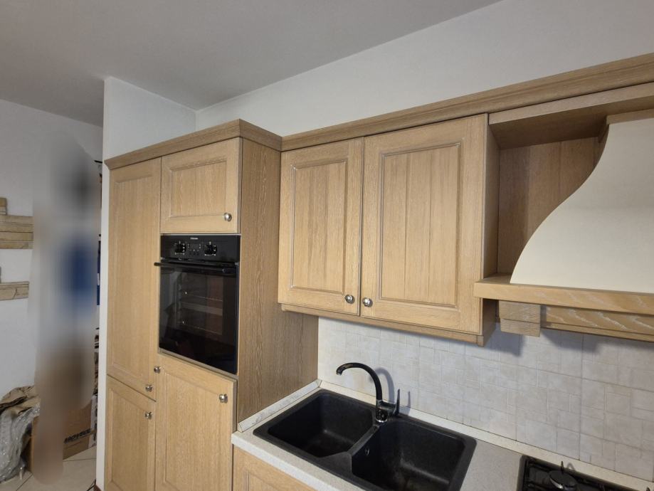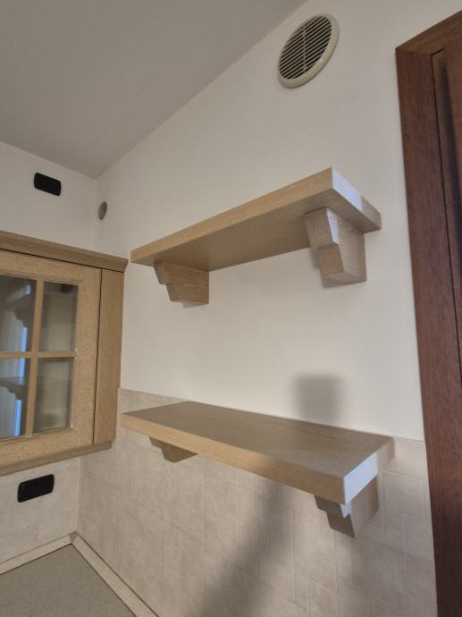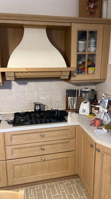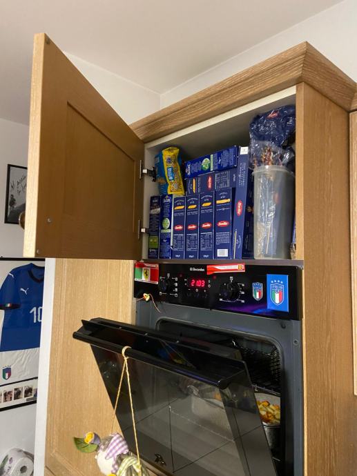 U kuhinji je ugradbena pećnica electrolux švedski, ugradbeni štednjak Franke kvalitetan, sudoper ,špina ,napa drvena sa ugrađenim motorom ..pa ugradbeni hladnjak REX ELECTROLUX,ugradbena mašina je AEG skupai ima siatem da vrata klize pa ju je moguće tamo ispod pećnicei staviti..