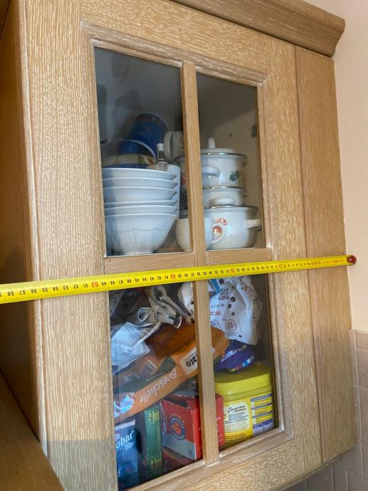 Kuhinja sa slike..drvene fronte od pravod drveta tvrdog..videcse godovi .fronte su debele 25mmo. I to jako lijepo očuvane I crvste fronte.