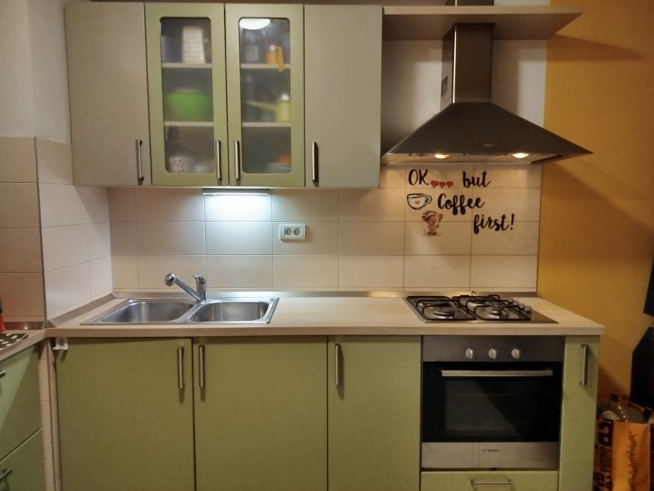Po mjeri izradjeni kuhinski elementi Max&Morris ,ukljucena zidnu montirana napa Fader,ugradbena pecnica Bosch,plinska ploca za kuhanje ( 3 plinske I jedna elektricna) Bosch.