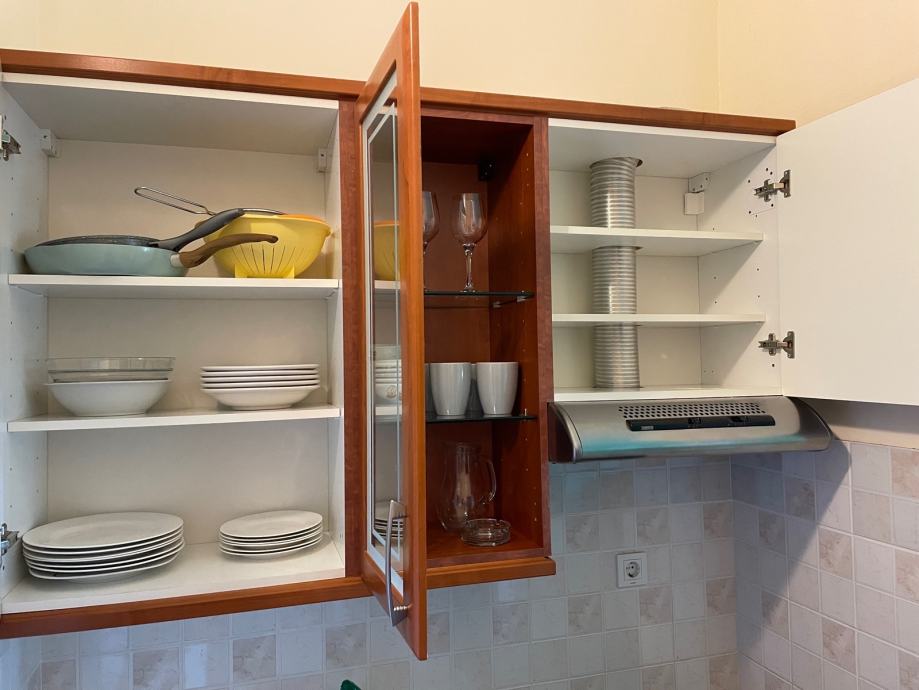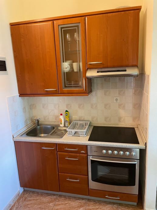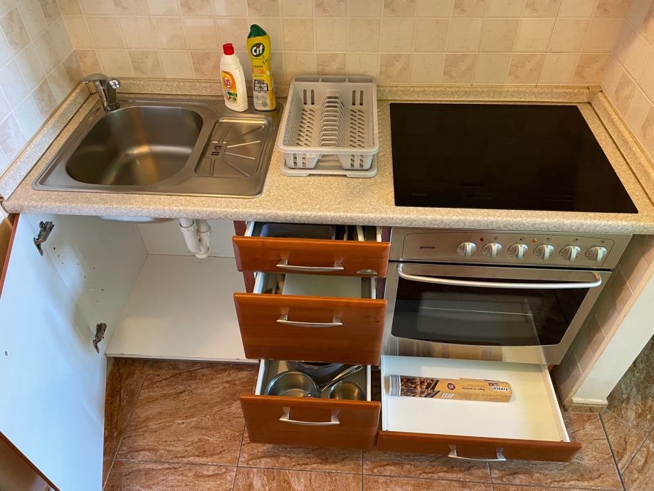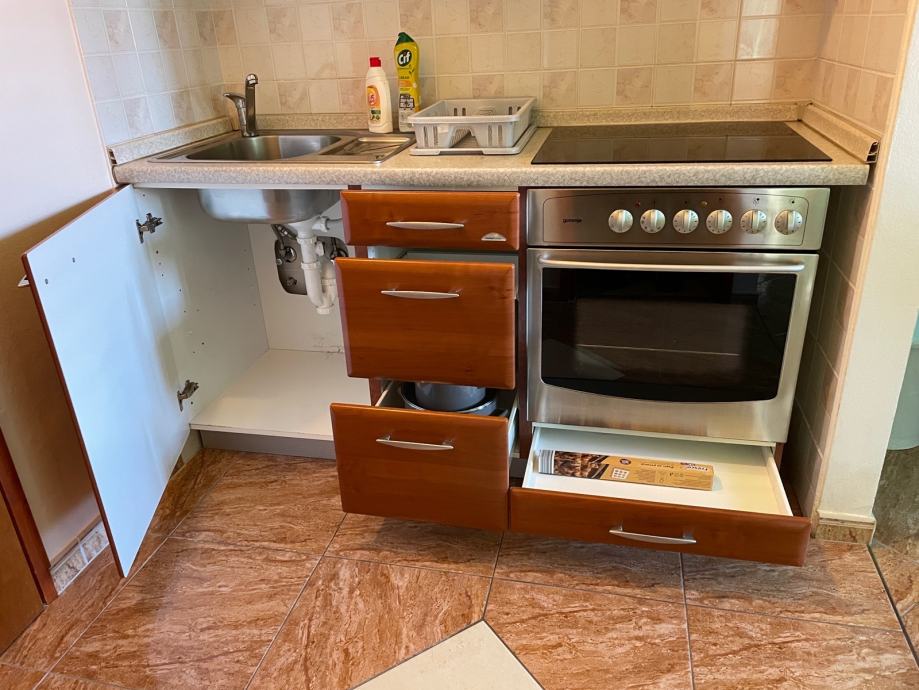 Prodajem drveni dio kuhinje sa sudoperom, slavinom i napom 60+40+60cm, gornji elementi visina 90+90+60cm.