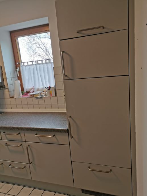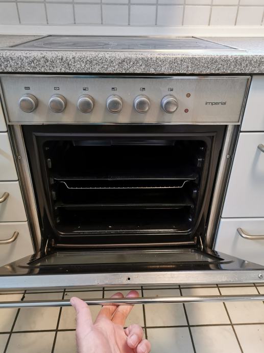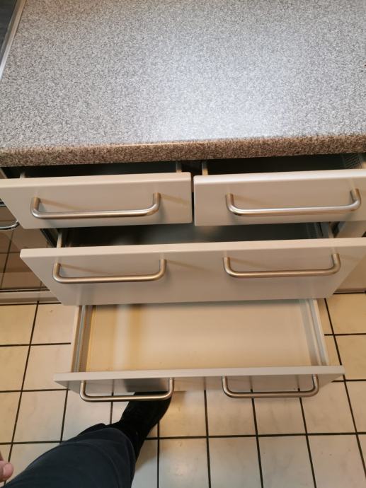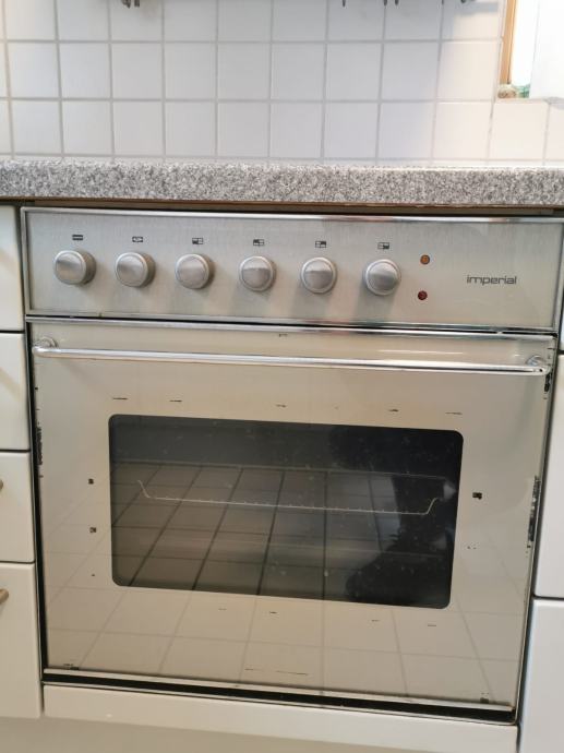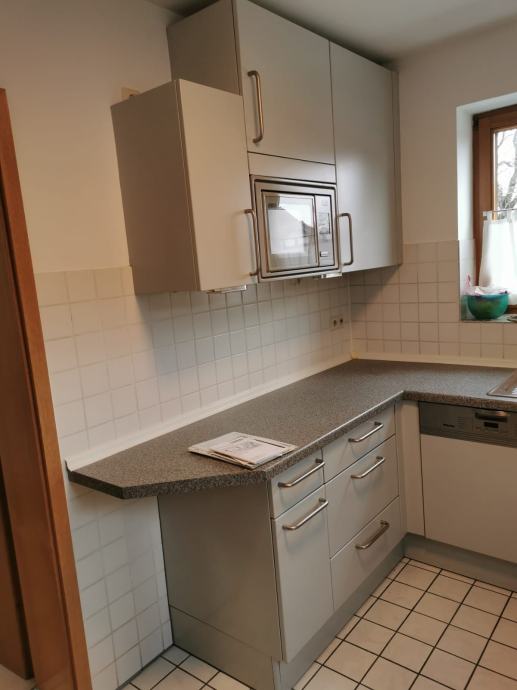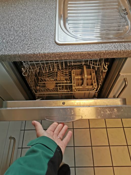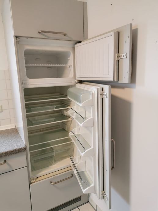 Kuhinja s aparatima: mikrovalna pećnica, pećnica, ploča za kuhanje, napa, perilica suđa.