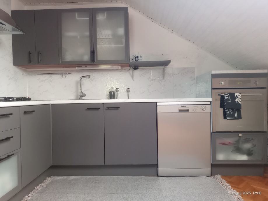 Aparati koji idu uz kuhunju su ploča za kuhanje 3 plin 1 struja,napa,perilica posuđa i pećnica.