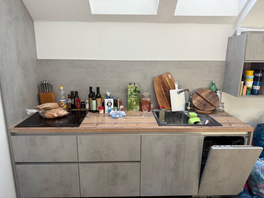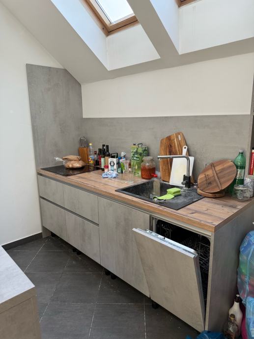 Mala kuhinja sa AEG pećnicom, AEG indukcijskom pločom, AEG perilica za suđe. Dužina 2,30m + 1,35m + mali otok sa šankom i 2 stolice. Dan Kuchen, Diesel kuhinja, sve ladice i ostalo vrhunsko, prodajemo radi preseljenja