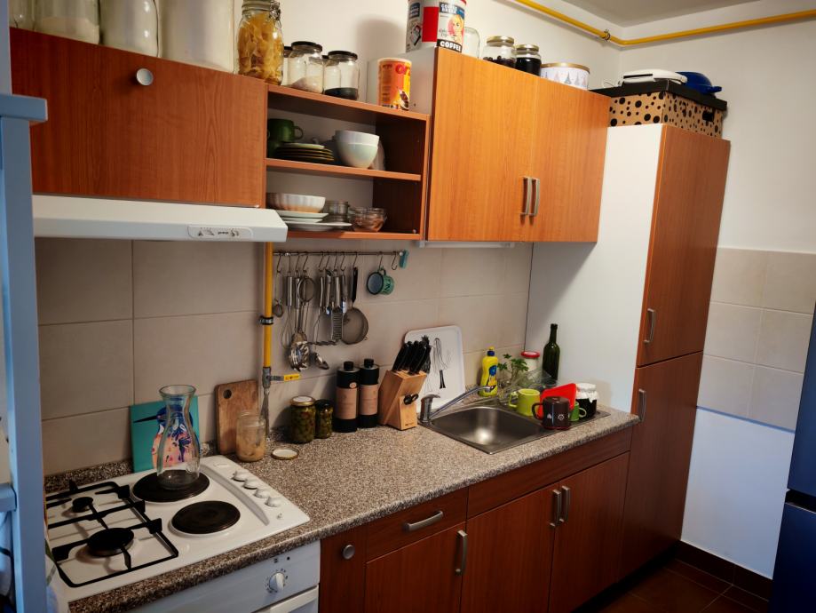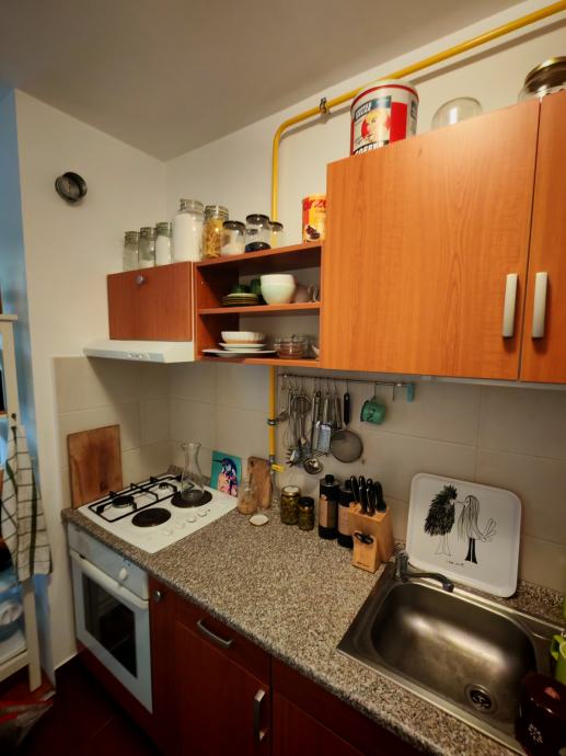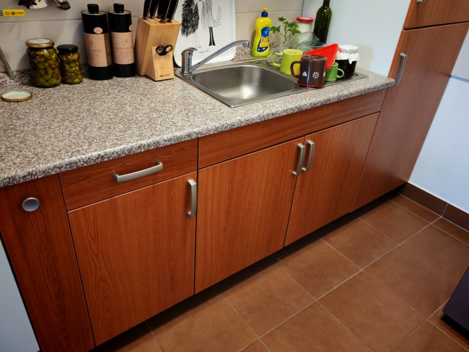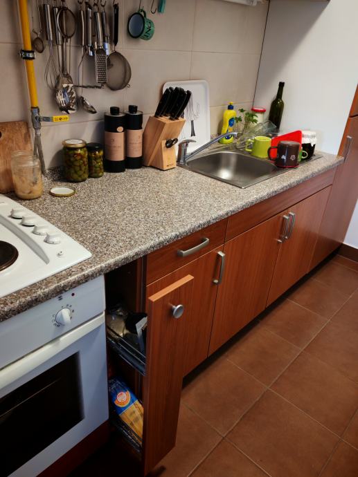 Kuhinja korištena, ali jako dobro očuvana, dužine 280 cm, prodaje se s kuhinjskim elementima, sve vidljivo na slici. Gornji i donji kuhinjski elementi, pećnica s gornjom pločom (2+2), napa, sudoper i špina