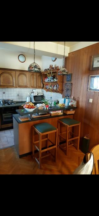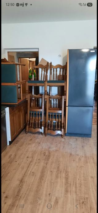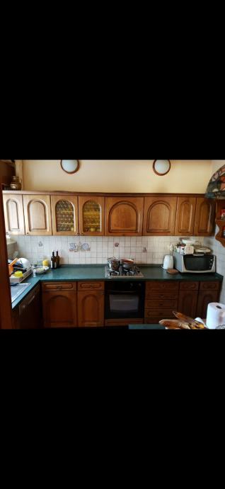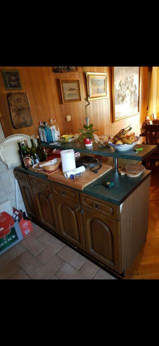 Kompletna kuhinja peč sa rernomi napom, sudoper, perilica suđa, veliki frižider Elektrolux, šank sa 2 stolice, stol sa 6 stolica itd.