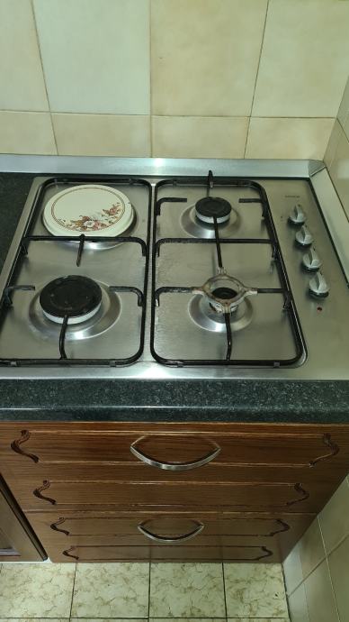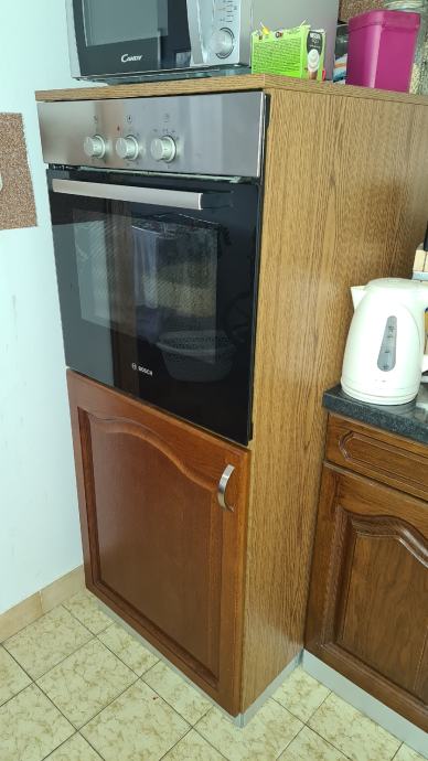 Kuhinja, u odličnom stanju, fronta drvo, hrast, s pećnicom bosch, pločom za kuhanje 3+1 (plin, struja) bosch, napa gorenje (izvlačna),sudoper. Električni aparati u izvrsnom stanju, bezprijekorni, ispravni. Dužina kuhinje 290 (ako nema perilice posuđa 230) + 60 cm.Element s pećnicom je odvojiv. Prodajem za 3999 kn.