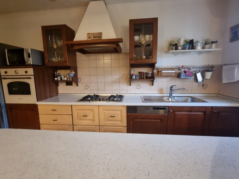 Rabljena kuhinja u odličnom stanju na prodaju. Kuhinja uključuje sudoper, pećnicu, napu i pipu.