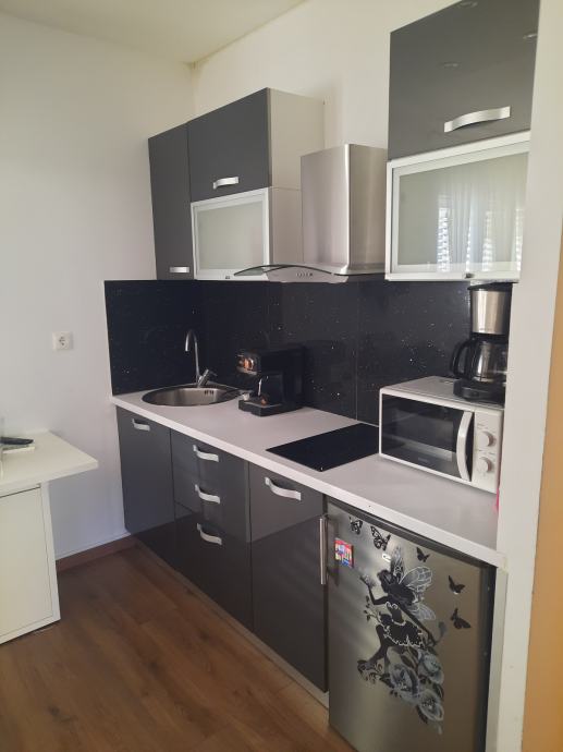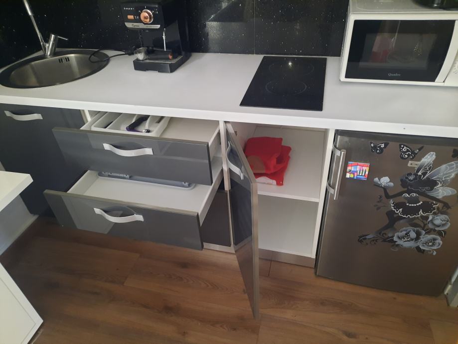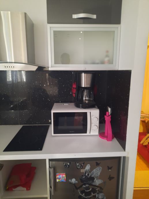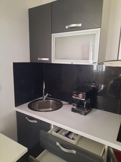 1. Prodajem kuhinju iz apartmana dužine 220 cm. Jako malo korištena , u odličnom stanju. Kupljena u emmezzeti kao pomoćna kuhinja u velikom apartmanu, Talijanska marka. Sjajni akril. Kvalitetna. Sačinjava je: napa, sudoper, staklokeramičko kuhalo (dvije električne ploče). frižider,bojler ispodpultni. Gornji elementi dubine 30 cm( 3 komada); donji elementi 60 cm(3 komada- ladičara 3)