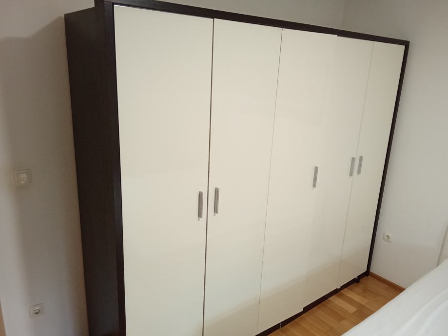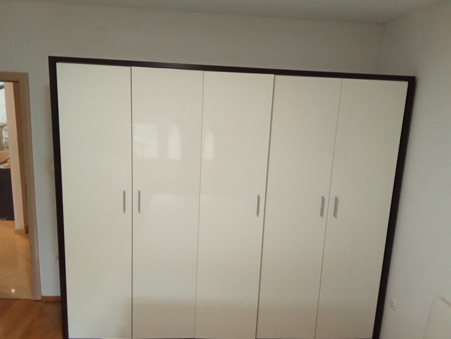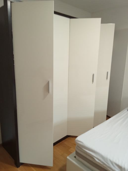 Ormar- crno bijeli, visok sjaj vratnica ; unutrašnjost dodatno uređena sa dodatnim sistemom polica. dimenzije(D 250x Š 60x V 215)