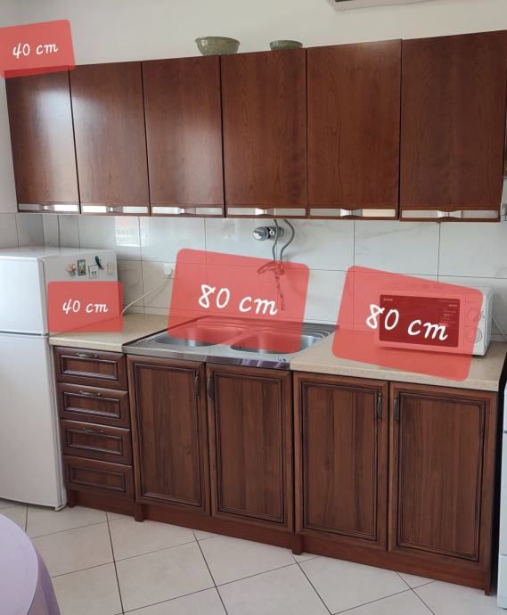 Duljuna donjih elemenata 1 x 40cm, 1 x 80 cm, 1 x 80 cm = 200 cm