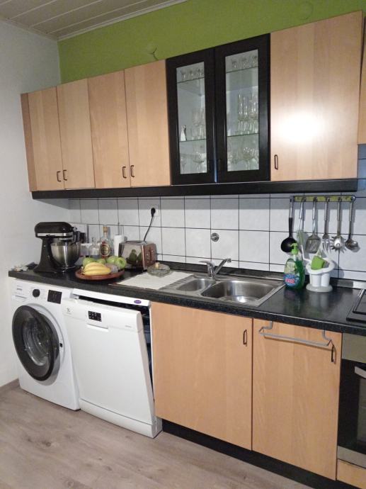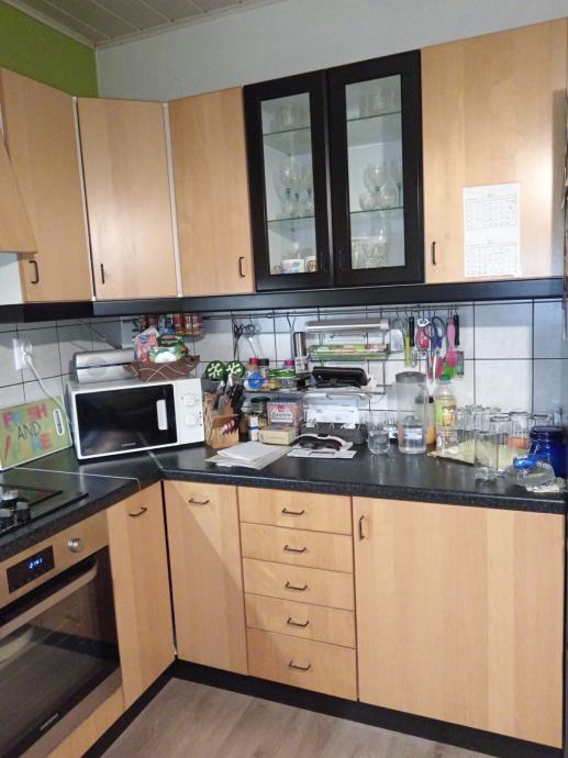 Prodajem kuhinju, korištena je i u odličnom je stanju. Uz nju dolazi i perilica suđa marke Electrolux te mikrovaljna marke Samsung, te sudoper i bojler marke Končar 448 kWk/annum i napa. Gornji elementi su visoki 69 cm, duboki 33 cm. Lajsna je 6 cm. Donji elementi su visoki 88 cm, duboki 60 cm. Dukačka 378x190. Dostupna je od sredine 4 mjeseca.