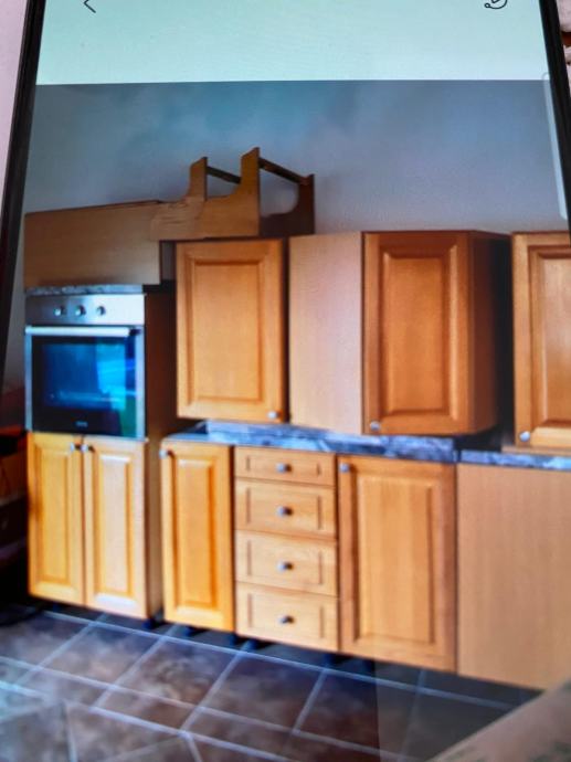 Prodajem kuhinju, visina gornjih elemenata 70 cm. Bila u funkciji sastavljena u slovo "U'. Radna ploča 2.93 cm i 2x90 cm i ploča od elementa ugradbene pećnice. Ukupno je dužine 5.30 cm. Prednje fronte drvene sa el.aparatima (pećnica Gorenje, ploča za kuhanje Gorenje 2plin, 2struja, sudoper inox sa slavinom, napa i perilica suđa.