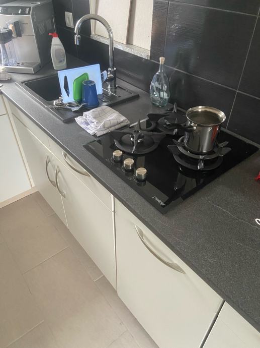 Kuhinjsi blok komplet kao na slikama, sa perilicom, staklena ploča na plin, sudoper kamen/marmor, aparat za kafu philips,hladnjak sa ledenicom(tri ladice)