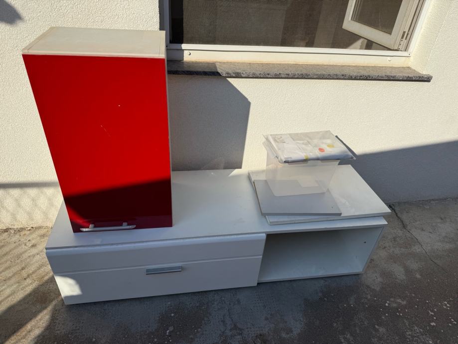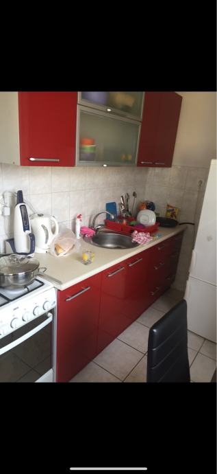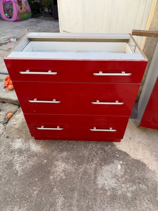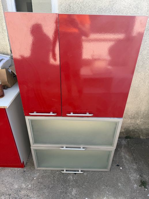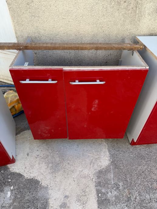 Prodajem kuhinju u ok stanju crvene boje velicina kuhinje 2 metra plus slavina i sudoper uz nju ima i ploca kuhinjska ako kupac bude zelio dam i nju plus regal donji za dnevni boravak plus gornji legal malo odjelpljeno ko sto se vidi na slikam plus element koji ide di je tv sve skupa 250€ 098801438