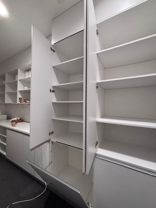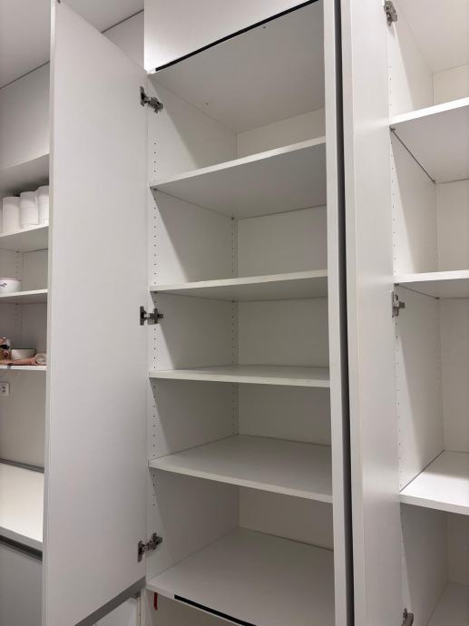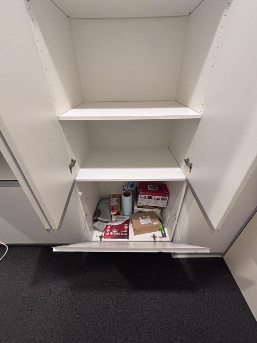 ormari x2: v 256 cm x š 80 cm x d 58 cm (s 4 i 5 polica, donji skladišni prostor v 75 cm x š 80 cm x d 54 cm)