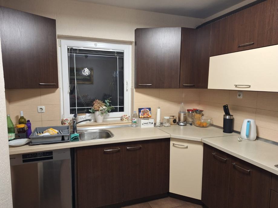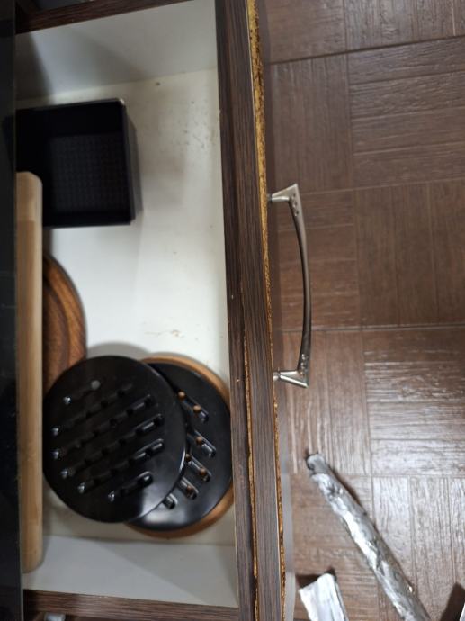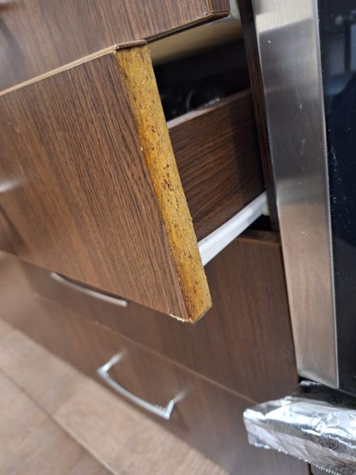 Kuhinja 260x280cm. U dobrom stanju. Ima tragova korištenja, ladice oko pećnice odljepio se kant. Vidi se na slikama. U cijeni pećnica, ploča i napa.