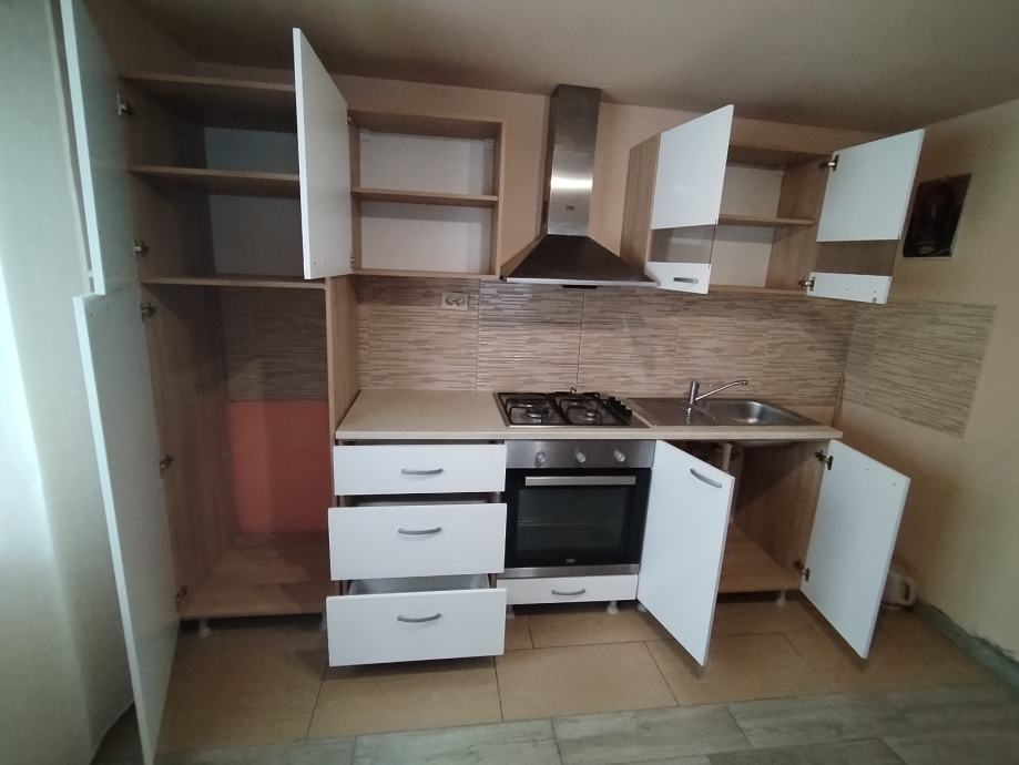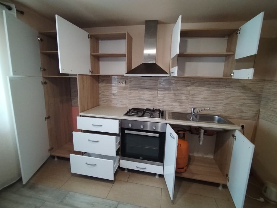 Prodajem rabljenu kuhinju u vrlo dobrom stanju dužine 260 cm.sa aparatima ,rabljena pećnica Beko , nova zapakirano staklo keramička ploča za kuhanje marke Beko, sudoper novi, ploča radna nova i napa marke Elica nova zapakirana.