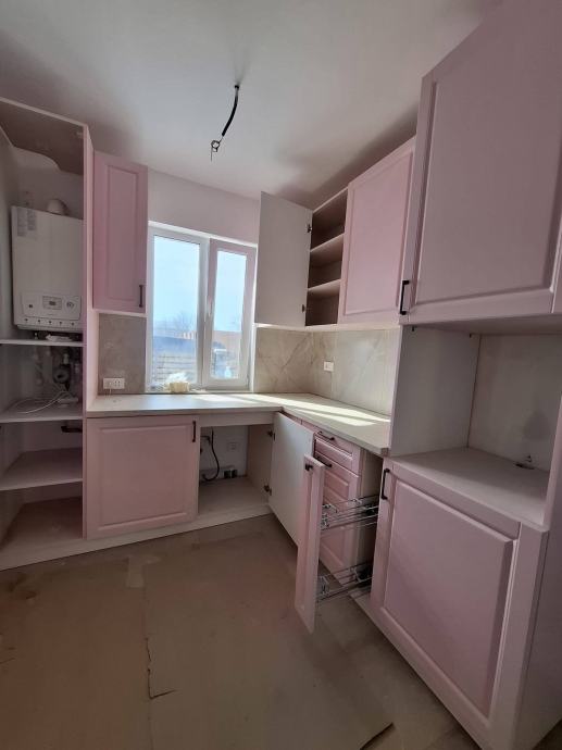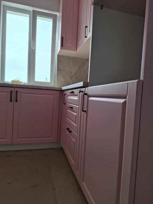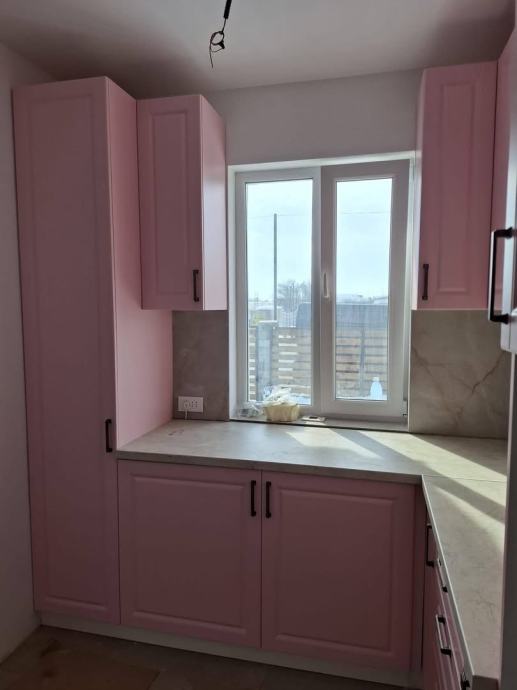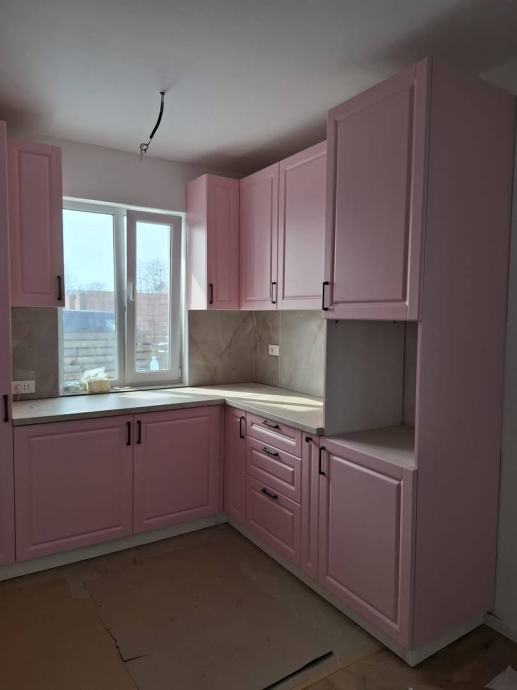 Kuhinja pink roze boje rustikalna izrađena po mjeri