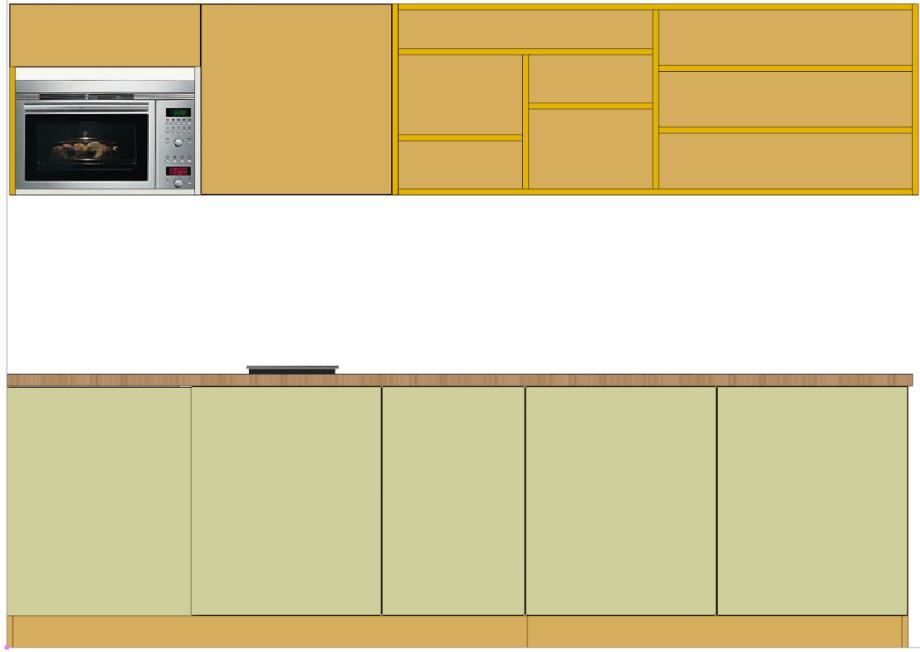 Duljina: Gornji elementi – 35 cm ormarić; prostor za ugradbenu mikrovalnu pećnicu / 20 cm police | Donji elementi – 60 cm