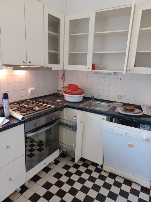 PRODAJE SE PO MJERI RAĐENA (KUT CCA 2,50 X 2,50 M), RABLJENA KUHINJA U DOBROM STANJU, SA SVIM APARATIMA: