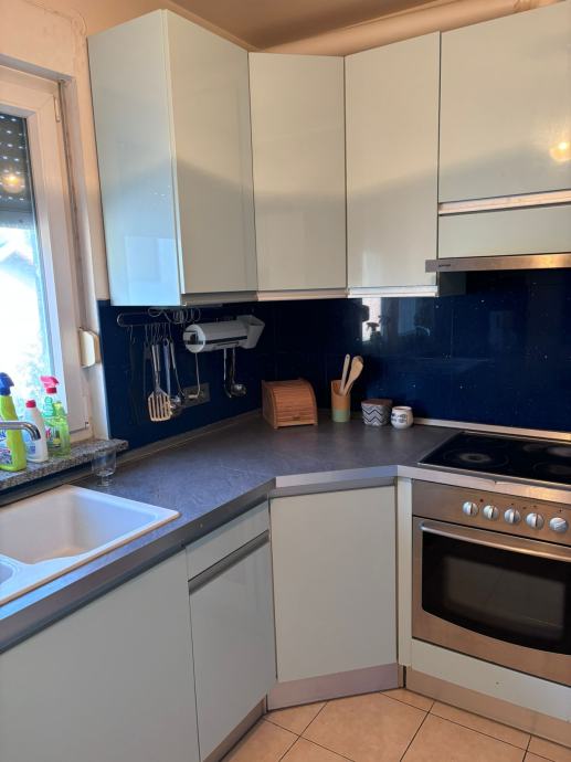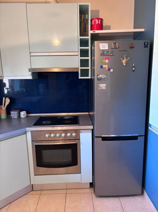 Prodajem kuhinju cijelu sa svim elementima, sudoper, pipa, suđerica(5g, radi ispravno), pećnica ne radi jedan grijač, ploča tri kola rade jedan ne, Samsungov no frost frizider 3g., napa ugradbena radi ali pi meni nije vise za upotrebu, sudoper u dobrom stanju kao i pipa. Radna ploča na jednom mjestu ostečena vidi se na slici, kod pečnice, radi se o dijelu trake rubne.