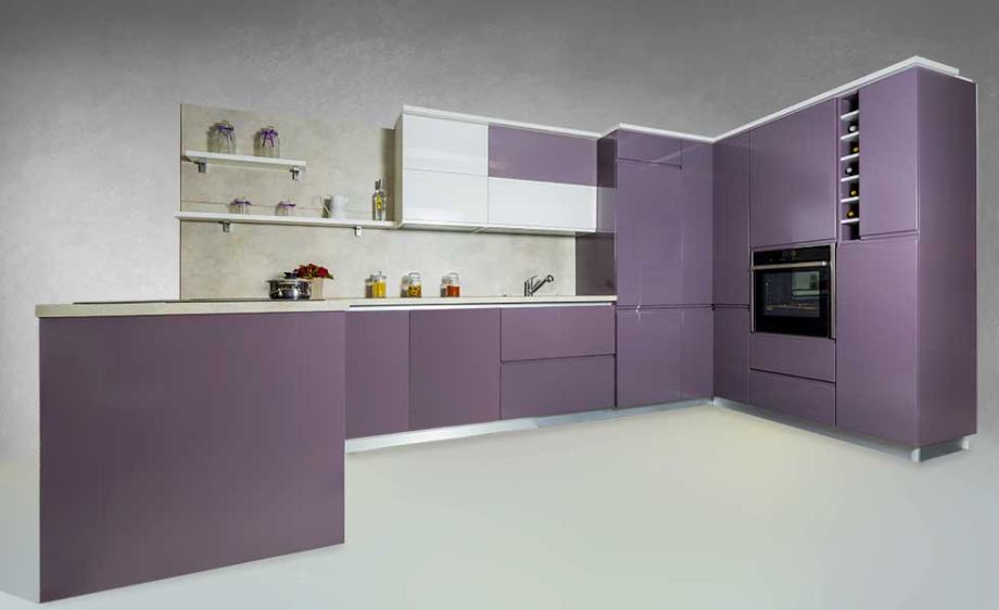 Linije kuhinje „Akord Viola“ su čiste i lišene suvišnih detalja, vrata su izrađena sa urezanim ručkicama, otvaraju se i zatvaraju lagano i tiho. Površine su glatke i lako se održavaju, dok specifična ljubičasto/siva boja ovu kuhinju čini razigranom i ne odaje dojam jednostavnosti.