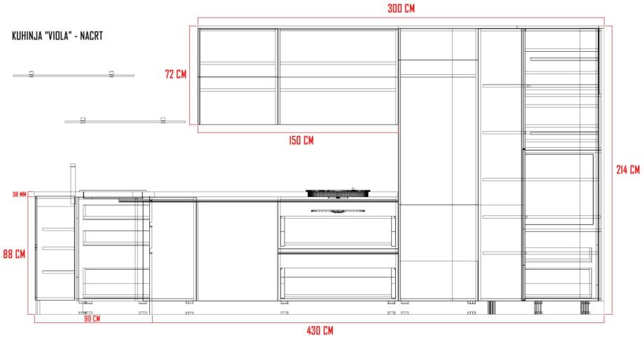 Kuhinja je izrađena je od bojanog vodootpornog medijapana visokog sjaja, dok visokokvalitetni okovi „Blum“ sa „soft-close“ sistemom prate svjetske trendove.