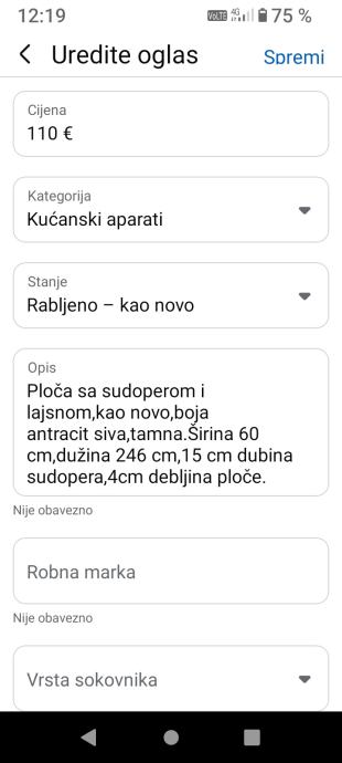 Kuh.ploča sa sudoperom,očuvano,dimenzije u slikama!