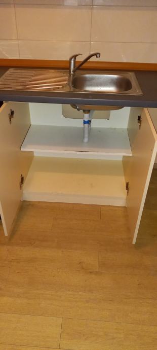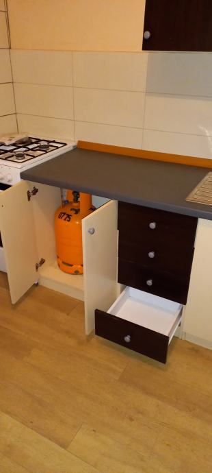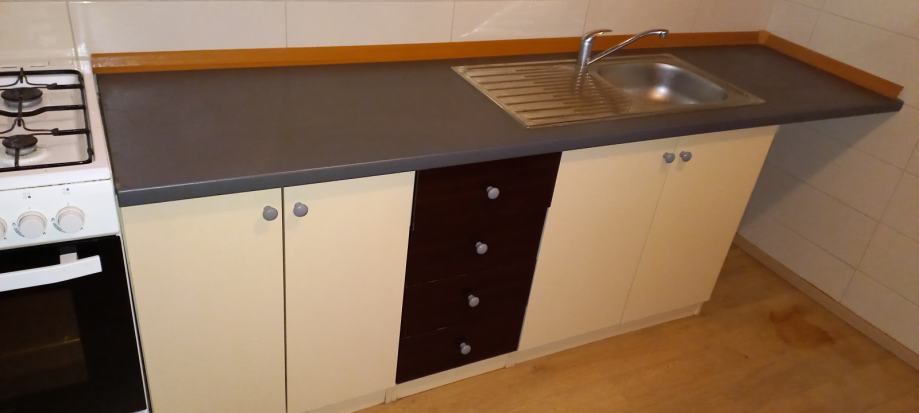 U kompletu prodajem kuhinjski blok (Liza), kuhinjsku radnu ploču, sudoper, slavinu i lajsnu.
