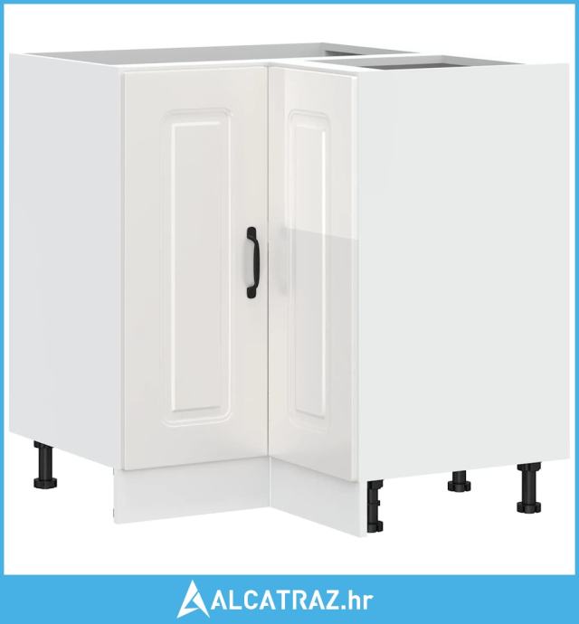 Kuhinjski kutni donji ormarić Kalmar visoki sjaj bijeli drveni - NOVO
