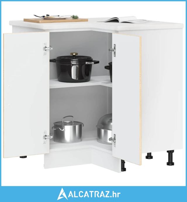 - Dovoljan prostor za pohranu: Donji kuhinjski kutni element nudi dovoljno prostora za pohranu zdjela, tanjura, lonaca i drugih kuhinjskih aparata.