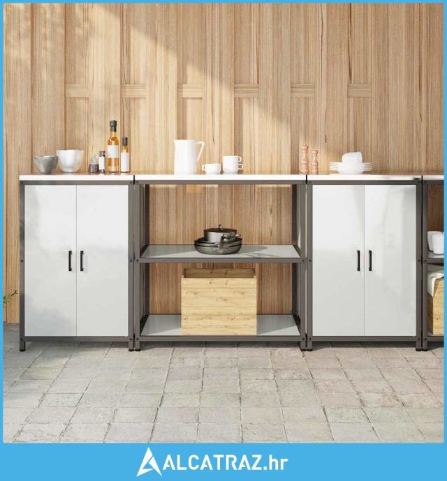 - Uključene komponente: Dolazi s jednom kuhinjskom policom i dva ormarića za pametnu organizaciju. Svaki dio ima čvrsta vrata s šarkama i elegantnim aluminijskim trakama, što kombinira funkcionalnost i stil. Šarke rade glatko, što čini korištenje jednostavnim.