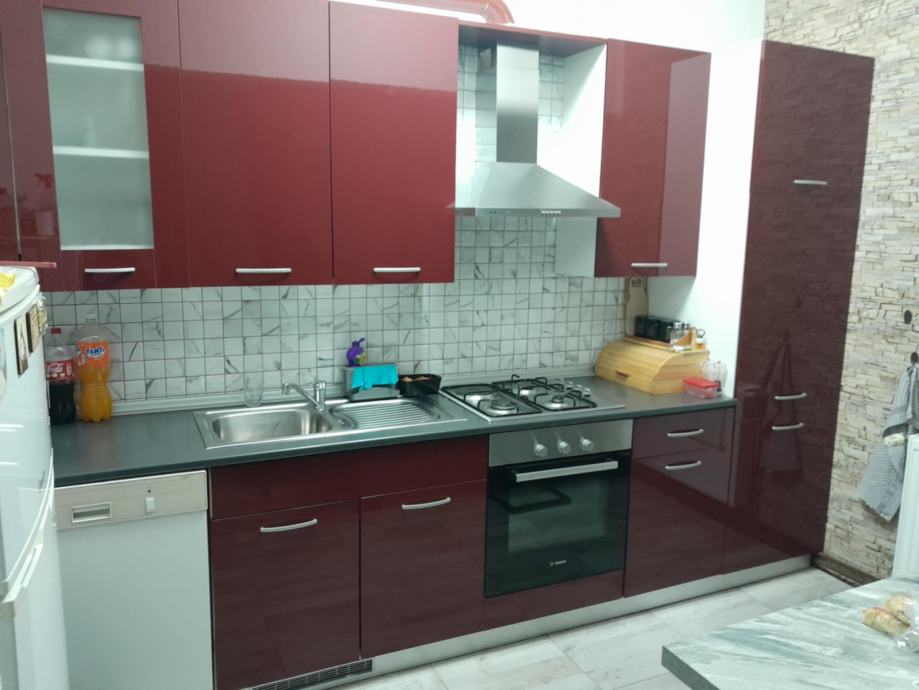 Prodajem kompletnu kuhinju u odlicnom stanju sirina 350 / 220 uz kuhinju dolazi perilica posudja Simens pecnica bos ploca za kuhanje plin struja Bos Napa gorenje Sudoper sa slavinom info na mob 098 16 55 033