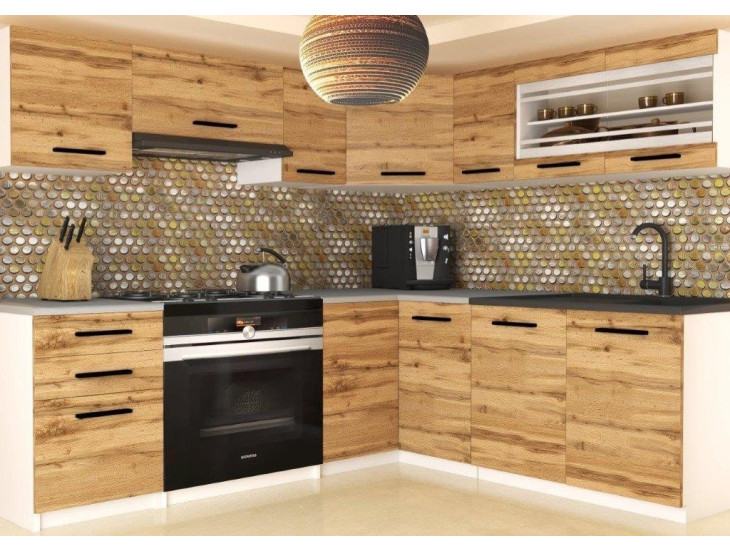 Kuhinja VENERA 1 je dostupna u više boja. Radna ploća nije u jednom komadu. U cijenu je uštet samo DRVENI DIO kuhinje. Moguće je dokupiti mekani sistem zatvaranja vrata ali ladice nemaju mogućnosti mekanog zatvaranja. Debljina radne ploće je 3 cm. Sve ručke su u crni boji i dubina donjih ormaric je 45 cm.