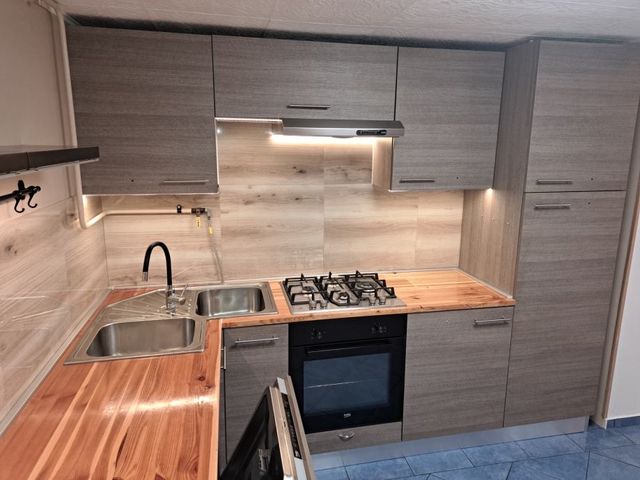 Prodajem navedenu kuhinju,kuhinja je bila korištena godinu dana i prodajem radi preseljenja.Sa kuhinjom dolaze svi aparati.Dodatno kupljeni sudoper,fleksibilna slavina,radna ploča od punog drva,4×plin,ručkice elemenata od inoxa,perilica suđa,te led rasvjeta ispod elemenata.Za sve dodatne informacije nazvati 0989961574.