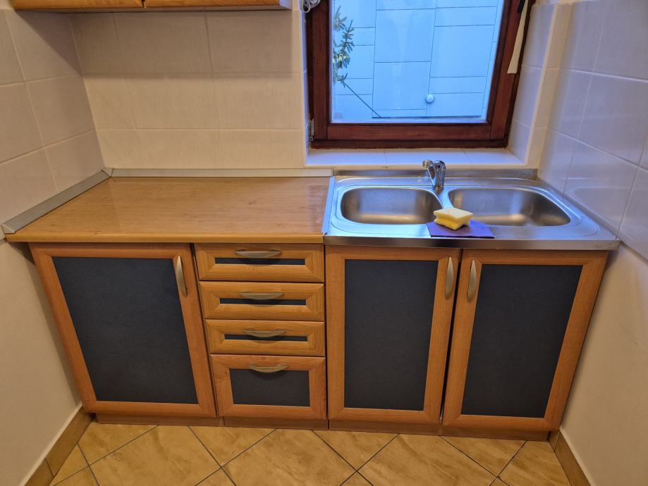 Prodajem manju kuhinju, sastoji se od 4 elementa (1 viseći te 3 donja elementa + sudoper). U izvrsnom je stanju jer je vlasnik stana većinu vremena proveo u drugoj državi. Idealna za manje stanove ili vikendice. Cijena: 300 eura. Nalazi se u Vukovaru. HITNA prodaja jer dolazi nova kuhinja - zadnja cijena 250 eura!