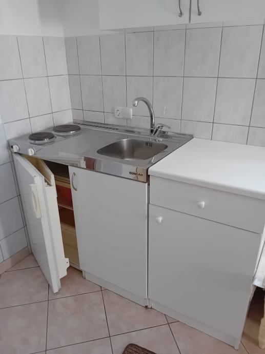 Sve sa slike. Sastoji se od frižidera, ploče za kuhanje, sudopera, elementa s radnom površinom i jedan dupli viseći element. Aparati su ispravni.