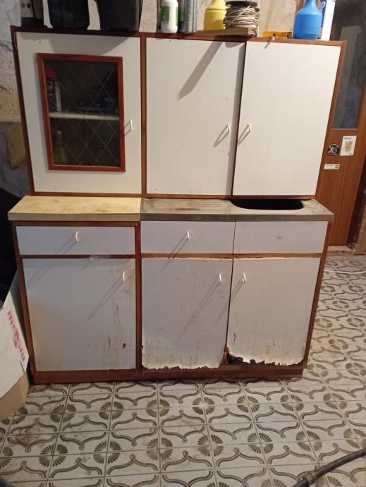 Prodajem korišteni kuhinju 120 cm gornji i donji element. Ručni rad, potrebno zamijeniti vrata na donjem elementu.