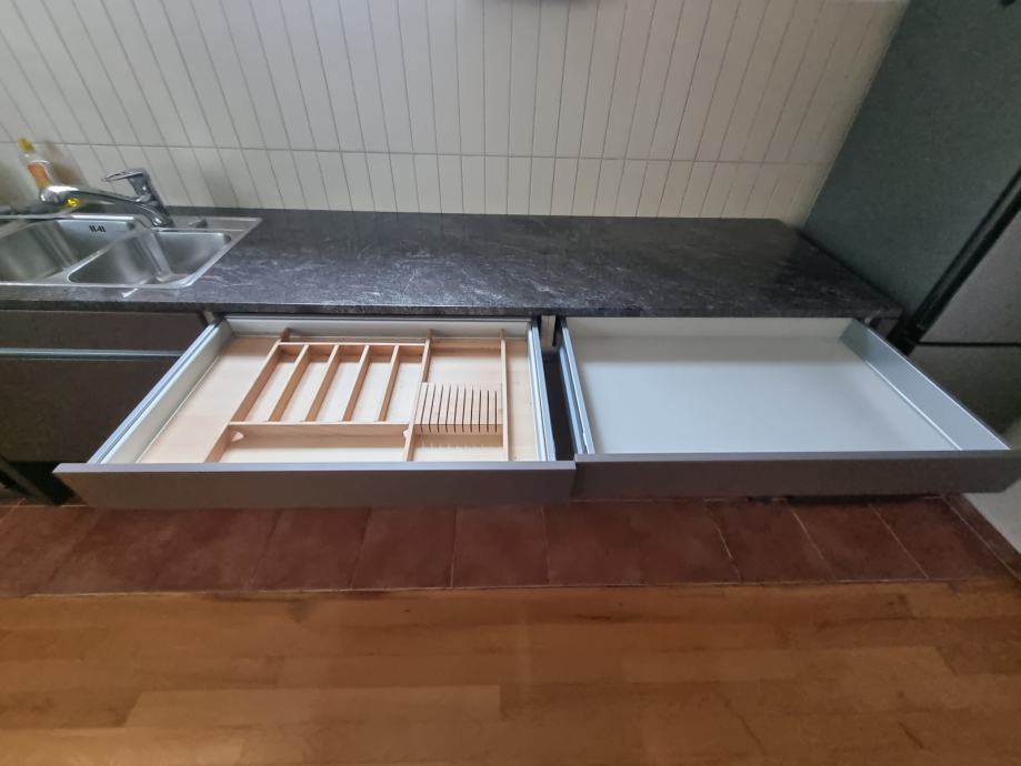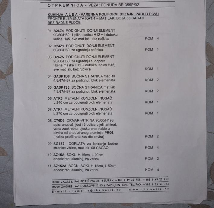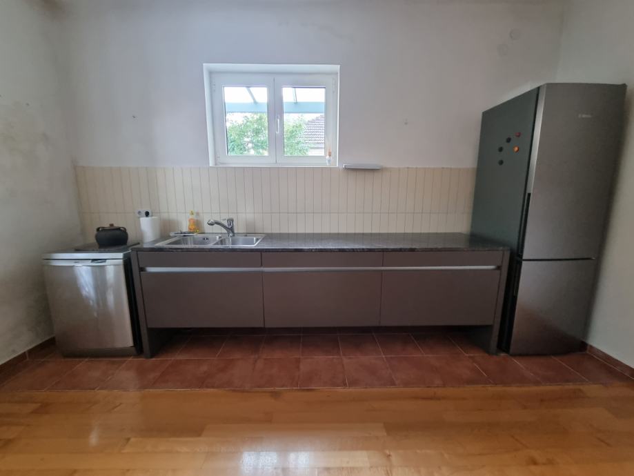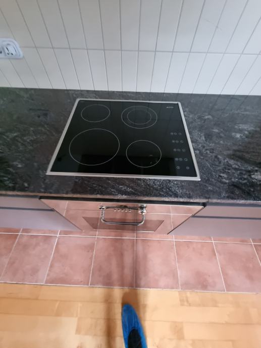 Kuhinjski namještaj s vrhunskim aparatima Smeg (štednjak, ploča, napa), Bosch perilica. Kuhinjski elementi ukupne širine 447cm s jedne strane i 280 cm s druge strane (sudoper). Gornja ploča od mramora dubine 67cm (kuhinjski elementi 60cm). Kuhinja je super očuvana. Možemo razgovarati i o prodaji pojedinih elemenata. Kupac treba osigurati prijevoz.