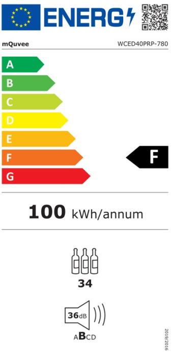 Podpultni ugradbeni hladnjak za vino WCED40PRP-780 je savršeno energetski učinkovit hladnjak za vino branda mQuvée u boji dekora drveta.