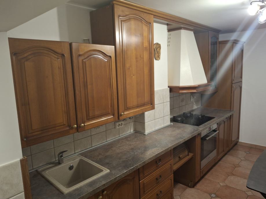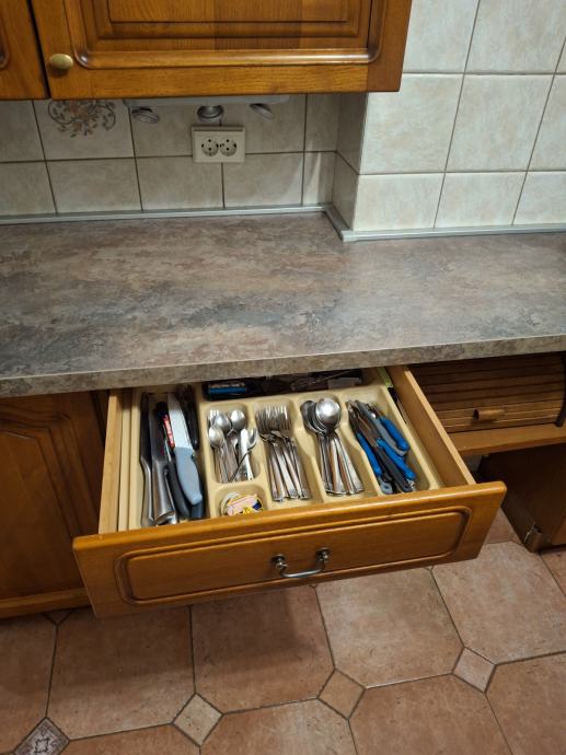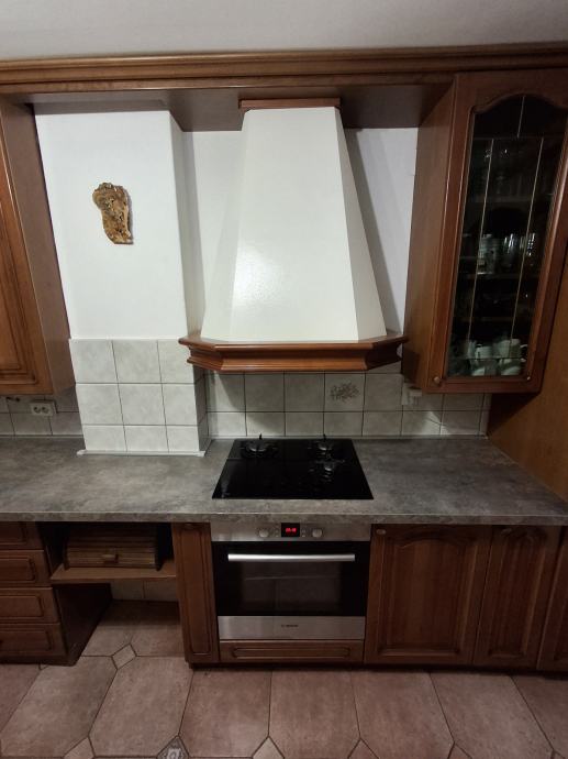 Prodajem izuzetno očuvanu kuhinju od punog drveta (fronte). Dužina kuhinje 3,55 m. Uz kuhinju ide napa, sudoper sa slavinom, perilica posuđa Zanussi za 12 osoba (neugradbena), štednjak na plin sa 3 gorača + 1 struja, te Bosch pećnica. Sve u potpuno ispravnom stanju i neoštećeno.