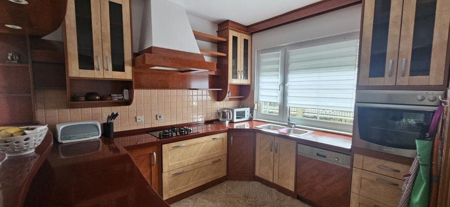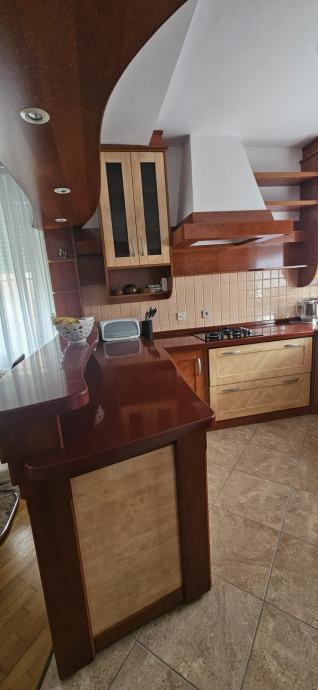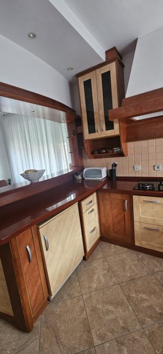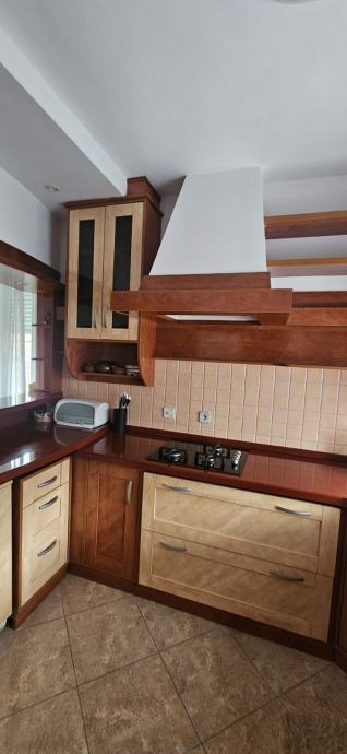 Na prodaju kuhinja jako rijetko korištena. Sa svim elementima i aparatima, osim radne ploče za kuhanje. Izrađena od najkvalitetnijih materijala kao što je puno drvo, kerrock i furnir. Cijena po dogovoru.