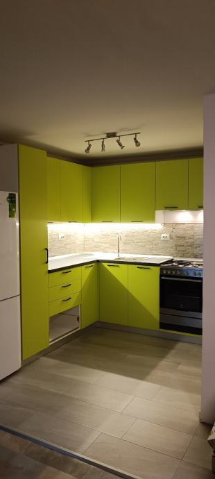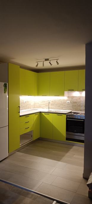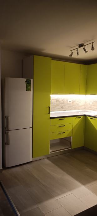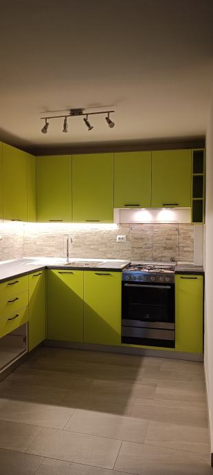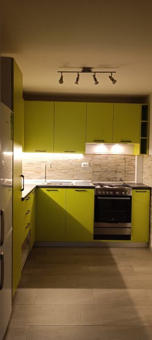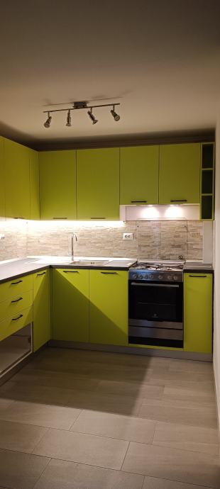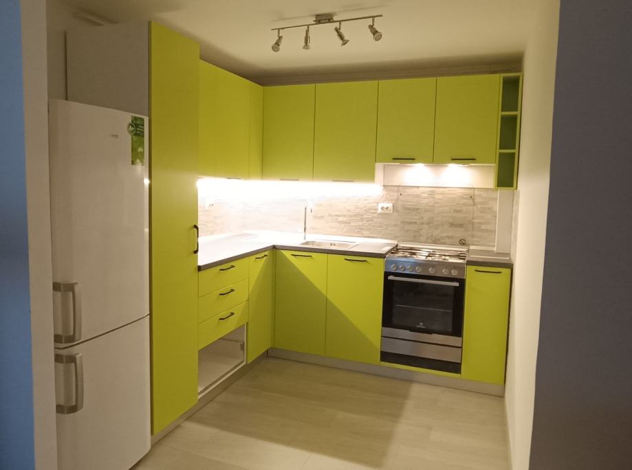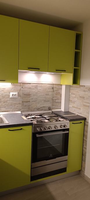 Prodajem novu kuhinju, rađenu po mjeri i korištenu samo 1. godinu. Zbog preseljenja u novi stan i specifičnog rasporeda nove kuhinje nismo u mogućnosti prekrojiti postojeću pa je potrebno kupiti novu. Kuhinja uključuje drveni dio, sudoper ,samostojeći štednjak, novu napu i led osvjetljenje.