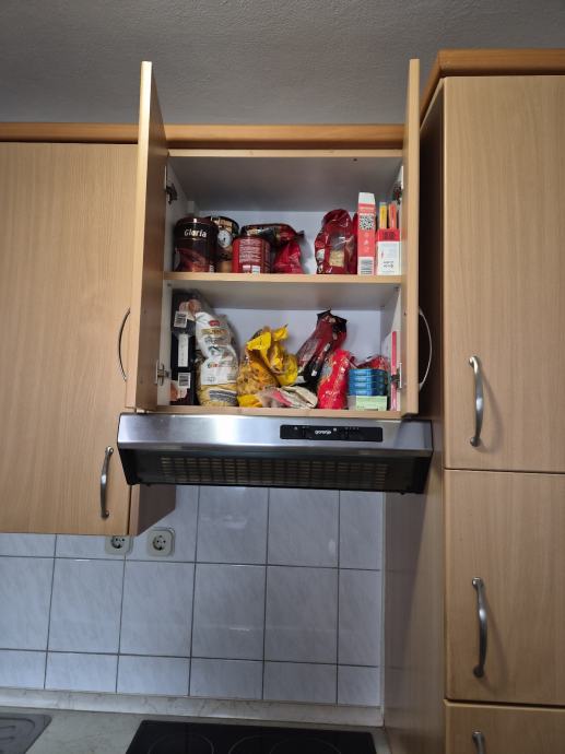 Prodajem ugradbenu kompletnu kuhinju ukupne širine 292 cm i visine 240cm. Kuhinja je u boji bukovog drva s većim brojem gornjih i donjih ormarića koji nude dovoljno prostora za odlaganje. U kompletu su uključeni sudoper, staklokeramička ploča za kuhanje, pećnica i napa, a tu je i perilica posuđa. Radna ploča je svijetle boje i nadopunjuje ukupan izgled kuhinje. Kuhinja je rabljena. Haldnjak i Zamrzivac u jednom su 2 godine obnovljeno.