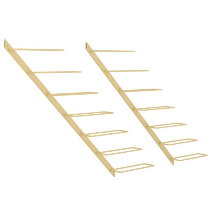 vidaXL Zidni stalak za vino za 7 boca 2 kom zlatni metalni(340899)