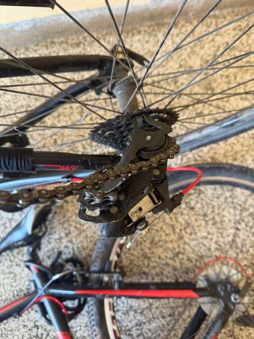 Prodajem muški bicikl s 8 brzina. Stražnji mjenjač je iskrivljen te ga je potrebno izravnati.