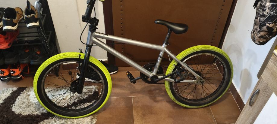 Prodajem rabljeni BMX bicikl s kotačima veličine 20 inča. Bicikl ima srebrni okvir s crnim upravljačem i upečatljivim zeleno crnim gumama. Idealan za ljubitelje BMX vožnje i trikova, u dobrom je stanju i spreman za nove avanture. Cijena nije fiksna.
