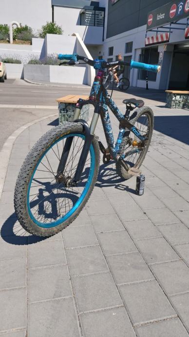 Zadnja felga: HOPE PRO 2 naba (jakoo glasna naba, pogledaj video na oglasu) i neki obican obruč, ali za koji dan stavljam dartmoot fortress plavi.